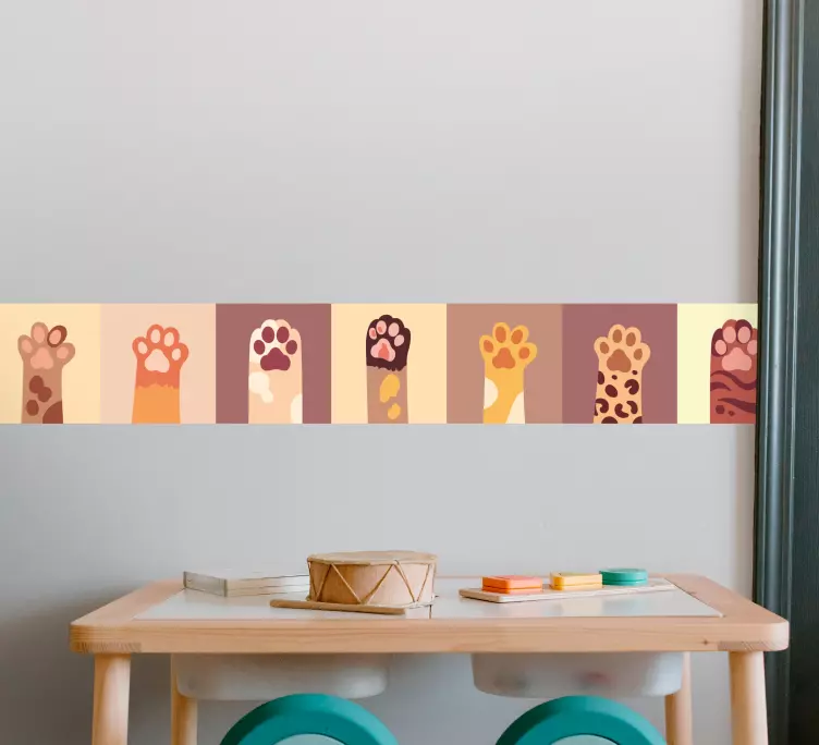 Descoperiți autocolantul urme vesele de labe, un produs cu un design grafic captivant care îmbină elemente de ţiglă și gresie cu labele colorate ale animalelor de companie, inspirate din desenele animate, și care creează o frontieră jucăușă în orice spațiu. Acest model adorabil va transforma orice încăpere, aducând un zâmbet pe chipul celor care îl admiră!