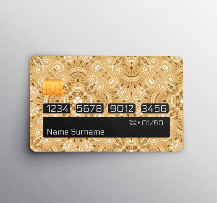 Designul grafic al autocolantelor de carduri de credit model ornate este o adevărată operă de artă, ce îmbină nuanțe de bej și motive ornamentale elegante, creând un model fascinant care dă viață oricărei încăperi. Acest autocolant împodobit este perfect pentru a adăuga un strop de rafinament decorativ în spațiul dumneavoastră, transformându-l într-un loc deosebit.