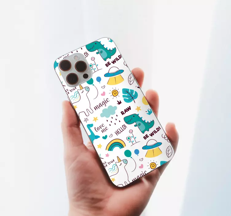 Descoperă magia universului fantastic cu autocolantele iphone cu modele de creaturi fantastice! Designul nostru grafic vibrant include dinozauri jucăuși și inorogi strălucitori, îmbinând fantezia cu un stil drăguț și colorat. Fiecare autocolant este o fereastră către o lume de poveste, transformând telefonul tău într-o operă de artă mobilă!