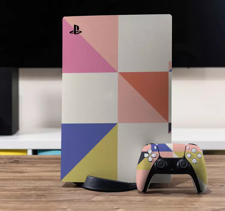 Autocolantele pentru PS5 modele colorate vibrante sunt o alegere perfectă pentru a-ți personaliza consola! Designul grafic al stickerului include forme geometrice atrăgătoare, cum ar fi triunghiuri și pătrate, toate într-o paletă de culori vibrante. Aceste autocolante multicolore vor transforma consola ta într-o piesă de artă, aducând un strop de energie și creativitate în camera ta de jocuri.