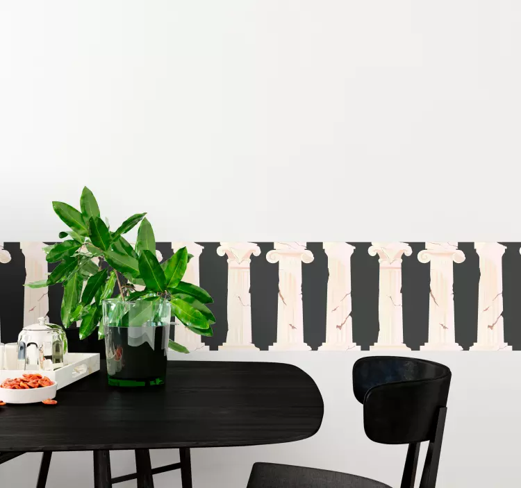 Descoperiți eleganța atemporală cu Autocolante perete design coloană clasică care transformă orice interior într-un spațiu sofisticat. Designul grafic inspirat de stilul antic grecesc oferă o atmosferă unică, cu coloane ce evocă tradiția și rafinamentul, având un fundal negru care scoate în evidență frumusețea marmurei. Acest element decorativ nu doar că decorează, ci și definește stilul casei dumneavoastră!