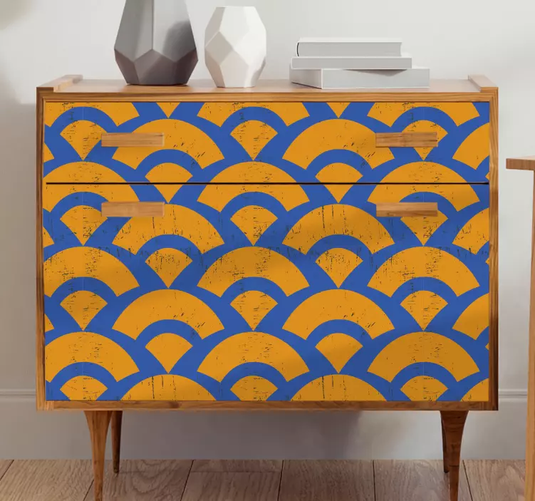 Referință: A51704Un model de valuri izbitor prezintă nuanțe alternative de albastru și portocaliu, creând un efect vizual dinamic. Acest design joacă cu formele și culorile pentru a spori atractivitatea estetică a oricărei suprafețe, fiind ideal pentru un mediu modern minimalist.