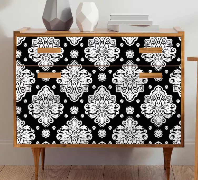 Referință: A48420Acest design elegant prezintă un model complex care îmbină elemente florale și geometrice, fiind plasat pe un fundal negru impresionant. Contrastul creează un aspect sofisticat care îmbunătățește estetica mobilierului, făcându-l perfect pentru interioarele moderne ale casei.