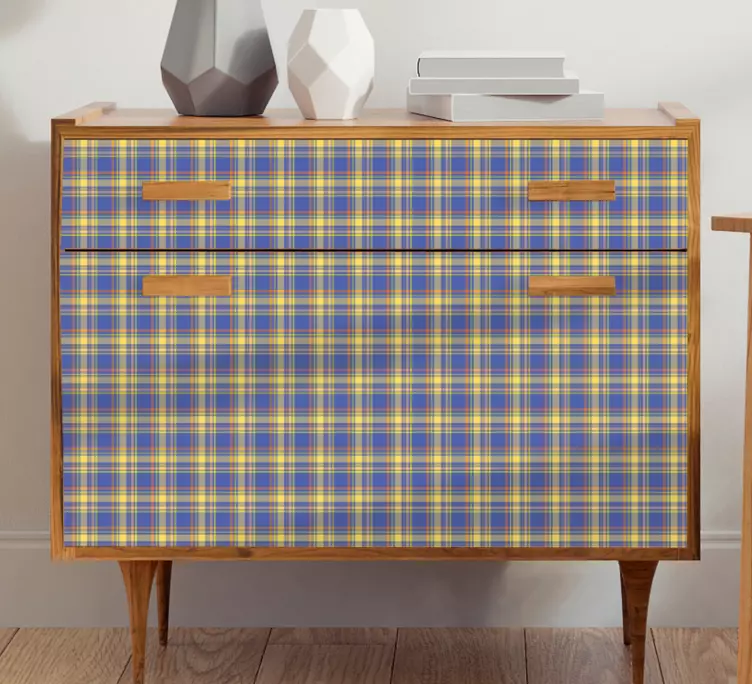 Referință: A49271Un model elegant de carouri care combină nuanțe de albastru și galben. Acest design adaugă o notă contemporană mobilierului, sporindu-i atractivitatea vizuală cu o estetică clasică, dar modernă.