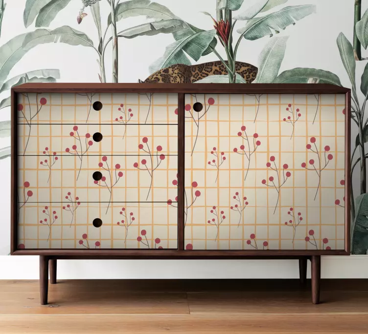Etichetele animale cutie cu model floral sunt o alegere perfectă pentru orice spațiu, având un design grafic vibrant ce îmbină elemente în carouri, grilă și fructe de pădure, aducând un aer proaspăt și colorat în orice încăpere, fie că este vorba despre mobilier sau sertare, transformându-le într-un adevărat cufăr de frumusețe florală.