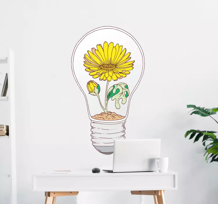 Îmbogățiți-vă spațiul cu un design grafic captivant ce îmbină un bec strălucitor, floarea soarelui vibrantă, frunze verzi și flori delicate, toate inspirate din frumusețea naturii și simbolizând creșterea și optimismul! Acest produs inovator aduce o notă conceptuală galbenă și plină de viață în orice încăpere, transformându-vă locuința într-un colț de rai floral.