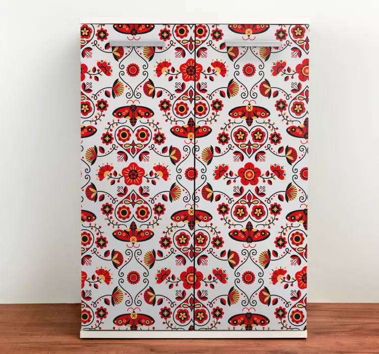Model de folclor roșu din decalcomanii din polonia pentru mobilie
