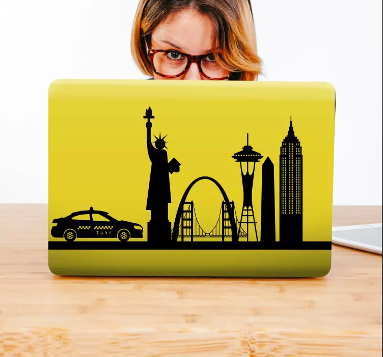Referință: A33771Decalcomanie frumoasă pentru husa pentru laptop, cu design uimitor, ilustrând un taxi care conduce prin oraș.