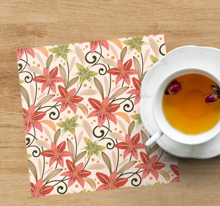 Descoperiți suporturi pahare cu accente florale ce îmbină frumusețea florilor și a crinilor într-un design modern, ilustrat cu culori vii inspirate de natură, perfect pentru a adăuga un strop de eleganță oricărui decor. Acest model floral atrage privirile și transformă fiecare masă într-un spectacol vizual plin de viață!