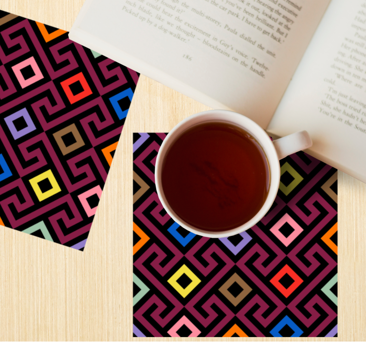 Descoperiți eleganța modernă a suporturilor de pahare cu model geometric colorat, un produs care îmbină perfect designul abstract cu un model geometric îndrăzneț. Aceste suporturi sunt o adevărată operă de artă, inspirând un aer modern și captivant prin formele lor intricate și culorile vibrante, creând un labirint vizual care va încânta privitorii.