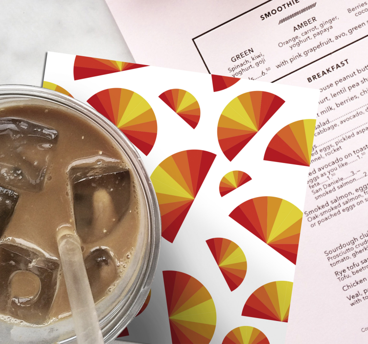 Descoperiți frumusețea și eleganța designului grafic al suporturilor pahare cu modele geometrice fani, ce îmbină perfect semicercurile, dungi inspirate de soare și apus de soare, toate într-o paletă de culori vibrante și texturi unice. Aceste modele geometrice nu doar că vor adăuga un accent stilat mesei dumneavoastră, dar vor transforma fiecare moment de savurare a băuturilor într-o experiență de neuitat!