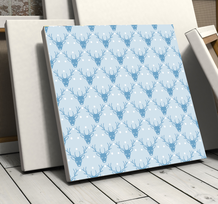 Descoperiți frumusețea iernii prin intermediul acestui Tablou căprioare model de iarnă, un design grafic captivant care înfățișează cerbi majestuoși, capete de reni și un peisaj de Crăciun acoperit de zăpadă, toate acestea într-o nuanță de albastru care va aduce un strop de magie în orice încăpere!