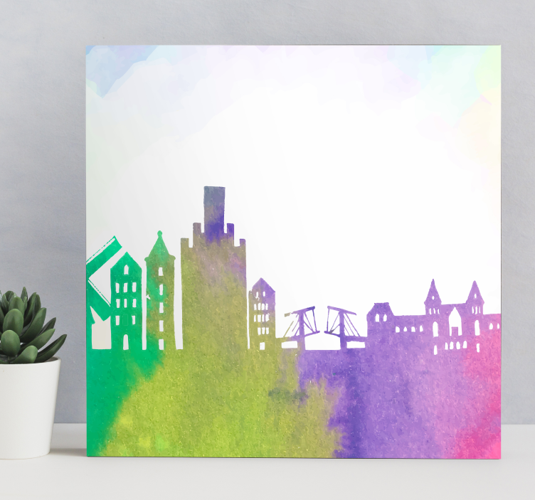 Descoperiți frumusețea unică a designului grafic al tabloului orașe siluetă urbană pe orizont, inspirat din atmosfera vibrantă a Olandei. Această pictură manuală aduce la viață nuanțele delicate ale acuarelei, surprinzând clădirile și reperele caracteristice ale unui oraș plin de istorie și cultură. Fiecare detaliu este realizat cu un stil artistic impresionant, transformându-l într-o artă care îmbină perfect culoarea și emoția.