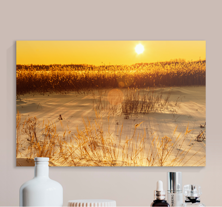Tablou peisaje răsărit de soare auriu