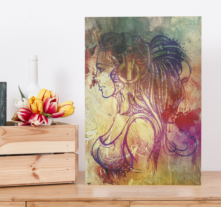 Referință: Q6417O siluetă captivantă a profilului unei femei cu păr fluid, ilustrată cu detalii intricate pe un fundal texturat. Designul surprinde esența feminității, evidențiind lucrările de linie detaliate și stropi vibranți de culoare, creând un amestec armonios de artă și expresie.