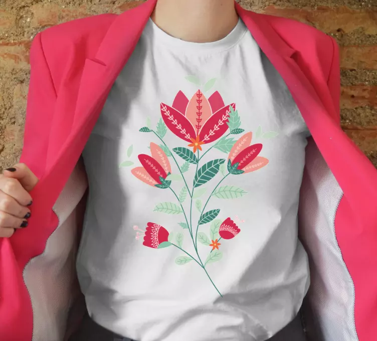 Întâlniți eleganța primăverii cu Alt tricou aranjament floral înflorit! Acest design grafic vibrant combină elemente de floare, folclor, popular, tradițional și tribal, toate fiind desenate de mână pentru a reflecta frumusețea naturii. Culorile bogate și florile stilizate creează un aspect colorat și botanic, perfect pentru a adăuga o notă de veselie și vitalitate oricărei ținute!