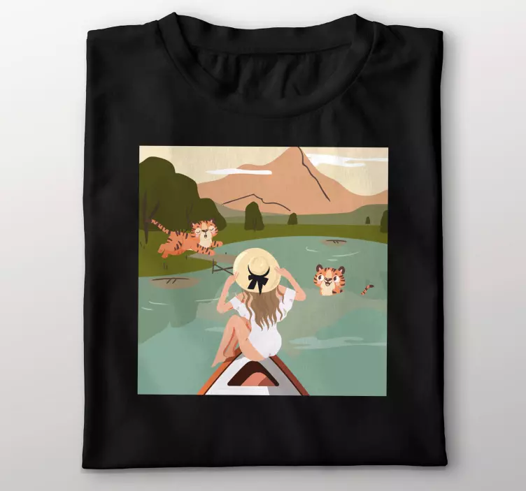 Descoperiți magia aventurii cu Alt tricou aventură cu tigri, un produs care îmbină perfect designul grafic vibrant cu elemente de natură. Acest tricou se bucură de o ilustrare captivantă cu tigri jucăuși, animale sălbatice, un lac cristalin și peisaje uimitoare, aducând astfel un strop de relaxare și frumusețe în aer liber. Fie că sunteți în căutarea unei piese vestimentare deosebite sau a unui decor inedit, acest tricou aduce la viață esența naturii printr-un desen animat plin de culoare.