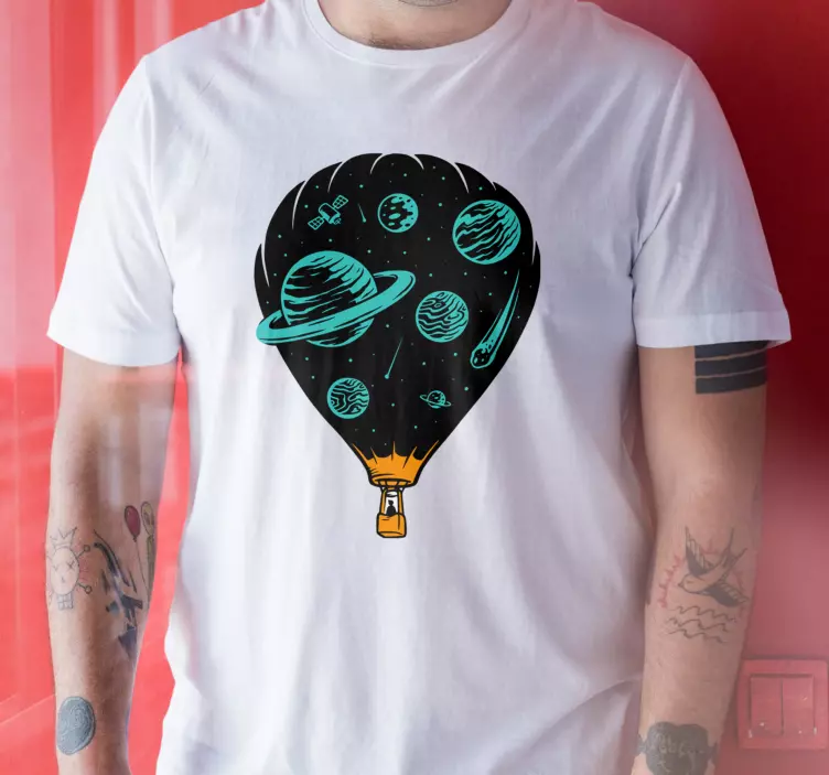 Descoperiți magia universului cu Alt tricou călătorie prin spațiu, un produs cu un design grafic captivant ce îmbină elemente precum balon cu aer cald, planete, spațiu, voiaj, ilustrare, conceptual, tema spațială, cosmic, colorat, explorare și capricios. Această piesă vestimentară nu este doar un simplu tricou, ci o invitație la explorarea infinitului!