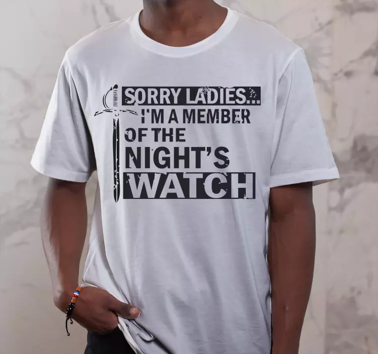 Referință: T4932Această cămașă albă are o afirmație îndrăzneață care subliniază apartenența la "night's watch", însoțită de un grafic impresionant cu o sabie. Perfectă pentru cei care doresc să își exprime umorul legat de fandom, bucurându-se în același timp de o îmbrăcăminte casual confortabilă.