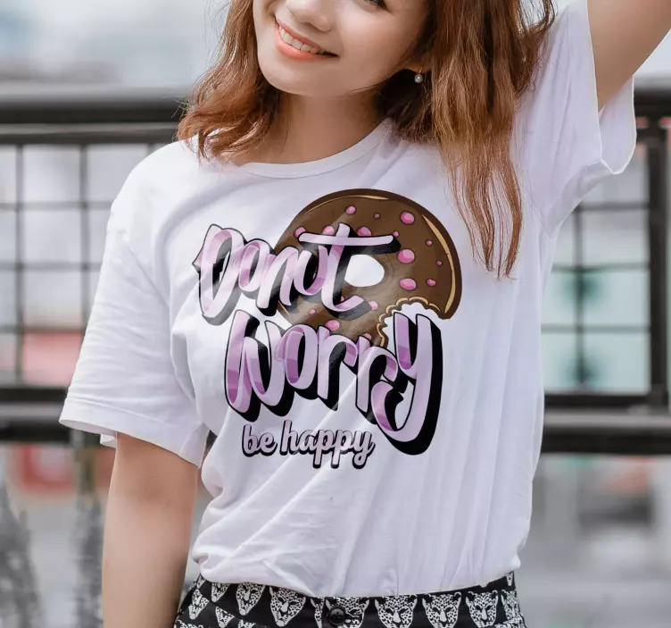 Referință: T4298Această piesă vibrantă prezintă un donut și un mesaj pozitiv care încurajează fericirea. Formulările jucăușe și culorile strălucitoare creează o atmosferă optimistă, făcând-o perfectă pentru îmbrăcăminte casual. Ideală pentru cei care caută o exprimare jucăușă în garderoba lor.