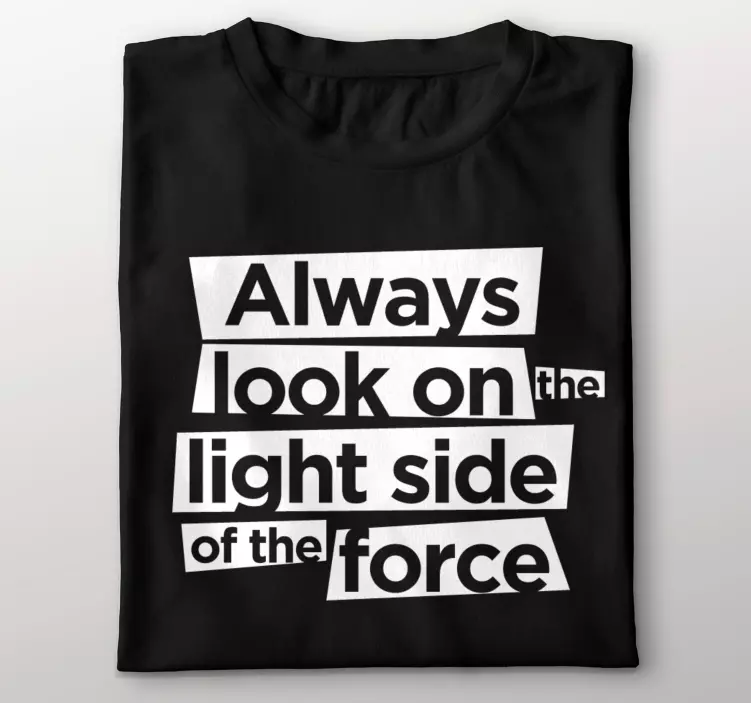 Descoperiți Alt tricou priveste mereu partea luminoasă, un produs cu un design grafic inspirat care îmbină mereu forța textului motivațional cu un aspect amuzant și elegant. Disponibil în culori monocolore alb și negru, acest tricou este alegerea perfectă pentru cei care doresc să transmită un mesaj pozitiv cu stil.