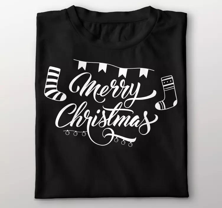 Referință: T4656Acest design impresionant prezintă expresia 'Merry Christmas' în litere elegante, însoțită de modele festive precum ciorapi și elemente decorative, întruchipând spiritul de sărbătoare al sezonului de Crăciun.