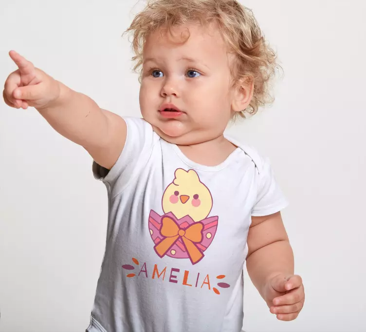Un tricou pentru bebeluși pui drăguț cu fundiță este perfect pentru a adăuga un farmec aparte ocaziilor speciale! Cu un design plin de viață și elemente adorabile, acest tricou va transforma orice moment într-unul memorabil. Fie că este vorba despre o petrecere de naștere sau o ieșire în parc, acest tricou va atrage toate privirile, aducând o notă de veselie și originalitate. Alegeți să îmbrăcați copilul în acest model jucăuș și observați cum se va face remarcat!