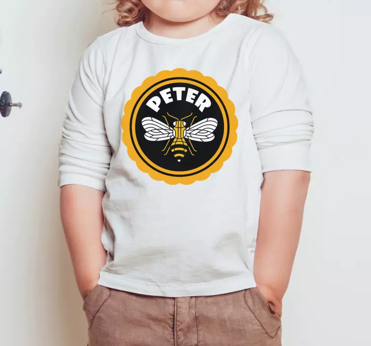 Referință: T4984Acest design fermecător prezintă o ilustrație vibrantă a unei albine, încercuită de o margine ondulată galbenă îndrăzneață. Numele 'Peter', afișat proeminent, adaugă o notă personalizată, făcându-l perfect pentru copii. Combinația de culori jucăușe și un motiv captivant creează un aspect atrăgător pentru îmbrăcămintea copiilor.