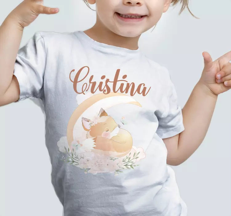 Referință: T4668Acest design adorabil prezintă o vulpe adormită, împodobită cu flori și o lună în formă de semilună. Paleta de culori moi sporește farmecul, făcându-l perfect pentru copii. Numele personalizat adaugă o notă unică, atrăgând părinții care caută îmbrăcăminte personalizată pentru cei mici.