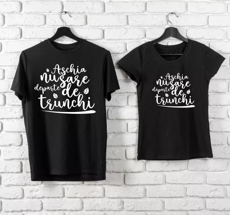 Asemanarea dintre tata si fiu este evidenta din multe puncte de vedere; daca sunteti un tata orgolios de copilul dvs. si doriti ca lumea sa vada acest lucru, atunci cumparati acest set de tricouri cu text tata si fiu si in mod sigur veti obtine rezultatul dorit. Faptul ca pe cel mic il veti imbraca la fel ca si pe dvs., ii va oferi acestuia un aer de mandrie si va manifesta tuturor acest sentiment. Este fara indoiala un trand ascendent si anume ca membrii familiei sa poarte tricouri cu acelasi design. Insa, cu acest tricou cu proverbul aschia nu sare departe de trunchi, veti atrage amuzamentul si admiratia tuturor celor care va vor privi. Comandati acum online marimile dorite si veti fi ca si imbracati cu acest model special!