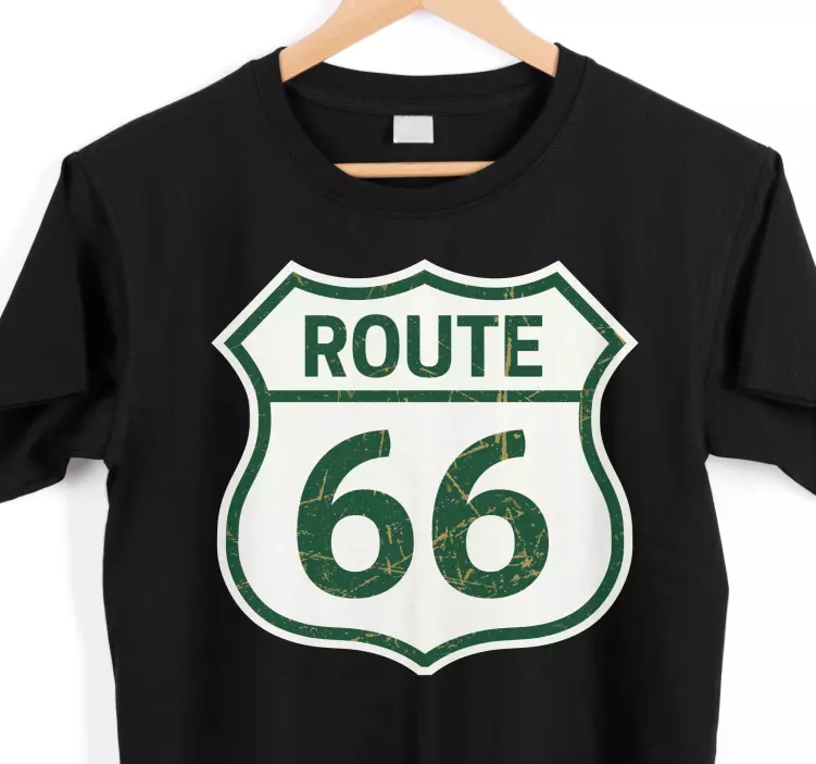 Referință: T1624Tricou verde route 66 - Un design personalizat pentru garderoba ta