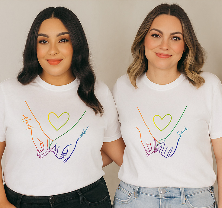 Îngrijirea Tricourilor cuplu inimă lgbt este simplă! Recomandăm spălarea la mașină la 30 de grade pentru a păstra culorile vibrante și a menține calitatea materialului. Pentru a le călca, asigurați-vă că le întoarceți pe dos sau folosiți o cârpă de barieră pentru a proteja designul. Astfel, tricourile voastre vor arăta mereu ca noi!