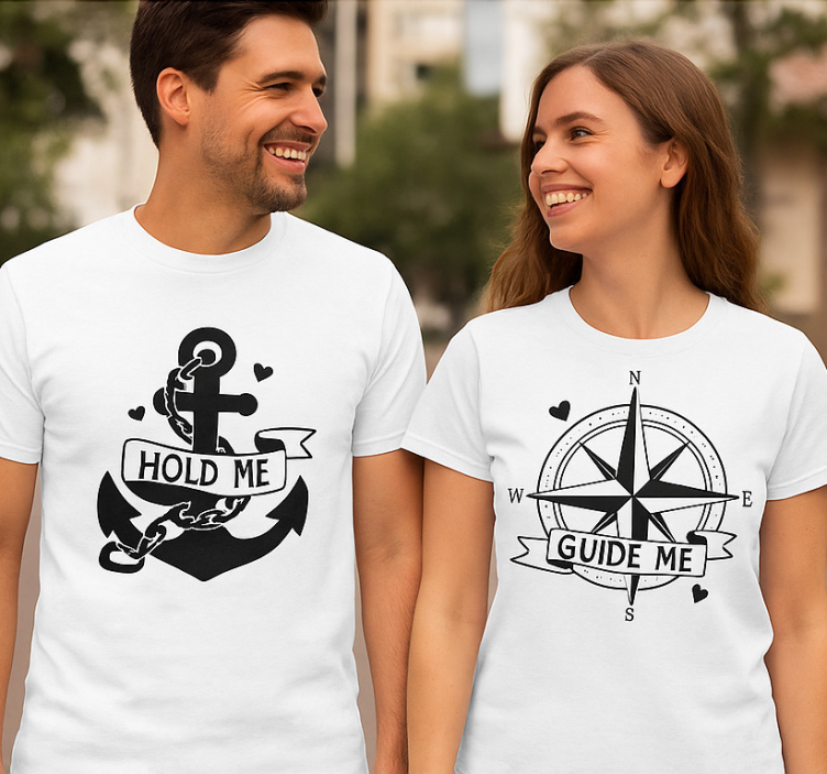 Îngrijirea tricourilor cuplu Ține-mă - ghidează-mă este simplă și practică. Se pot spăla cu ușurință la mașină la 30 de grade, iar pentru a menține culorile vibrante și designul intact, este recomandat să fie călcate pe dos sau cu o cârpă de barieră. Astfel, veți asigura durabilitatea și frumusețea acestor tricouri!