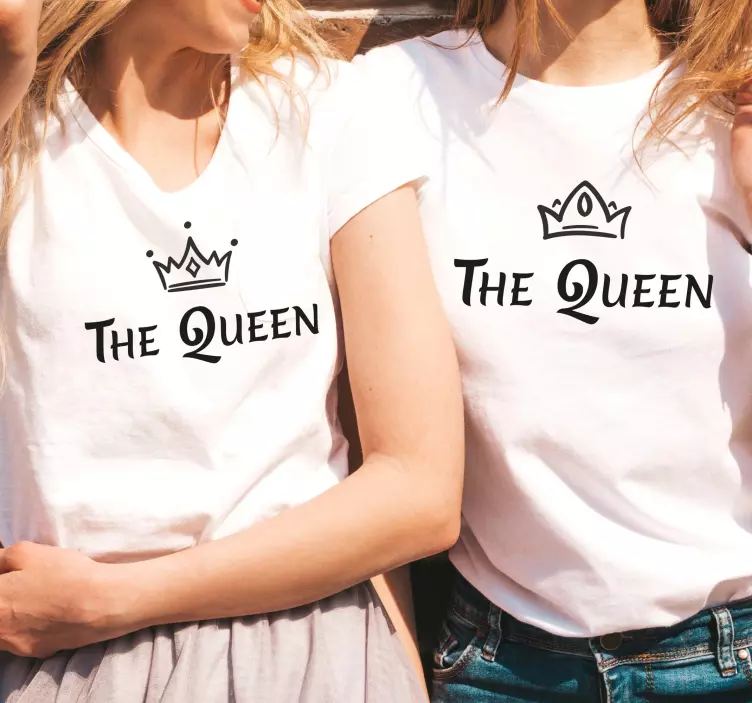 Referință: T4073Această imagine surprinde un moment emoționant între o mamă și fiica ei, ambele purtând ținute asortate care afișează cu mândrie expresia 'The Queen'. Designul jucăuș, accentuat de coroane, simbolizează legătura lor specială și momentele de bucurie împărtășite.